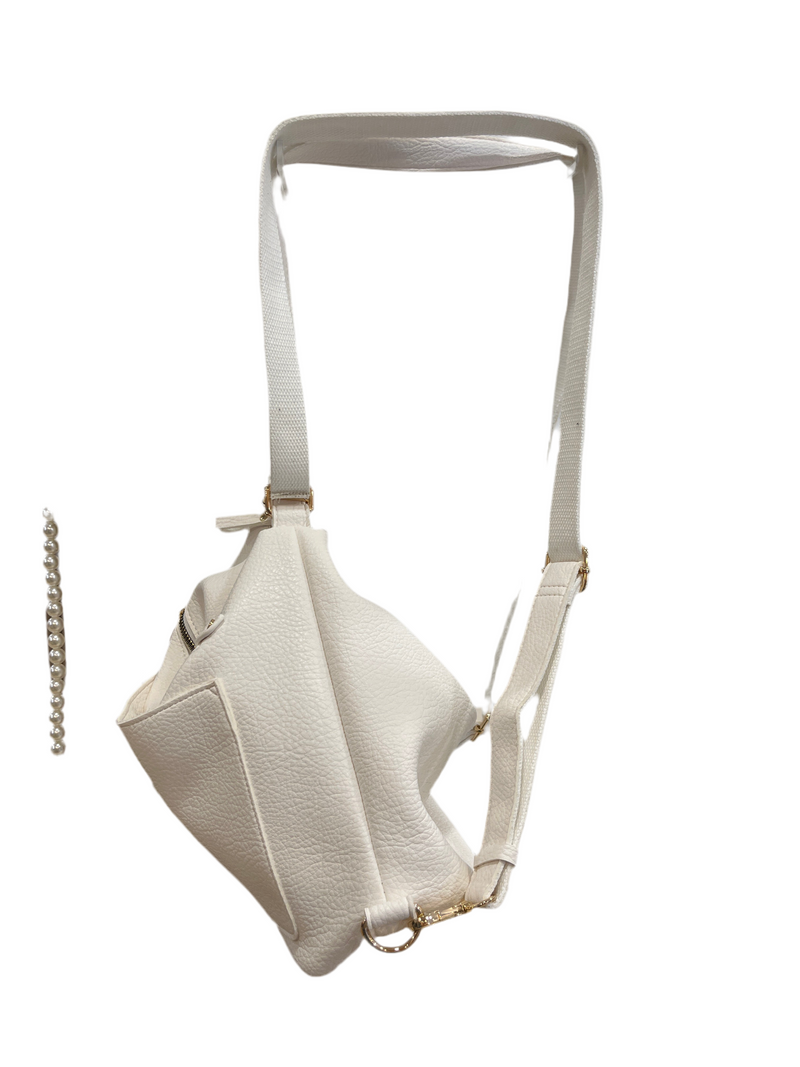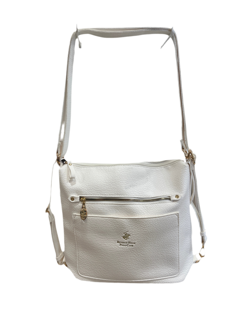 Porta con te tutta la bellezza di Beverly Hills con questa borsa zaino bianca! Pratica e versatile, può essere usata come borsa o zaino per i tuoi viaggi e gite. Sia che tu voglia essere comoda o alla moda, questa borsa è perfetta per te.