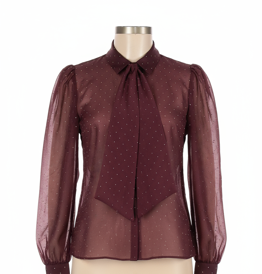 Questa camicia bordeaux impreziosita da brillantini e rouge sul davanti aggiunge un tocco di eleganza e originalità al tuo look. Perfetta per cerimonie e occasioni speciali, valorizza la tua presenza con uno stile raffinato e luminoso, garantendo un outfit indimenticabile.
