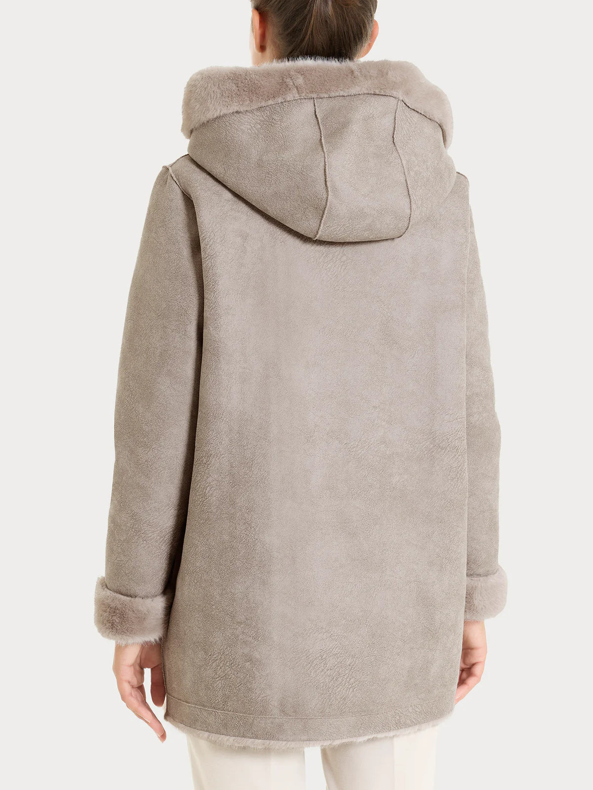 Il cappotto Vegan Fur double face Ragno è la scelta perfetta per chi cerca uno stile elegante e consapevole. Realizzato in eco pelliccia, è reversibile da un lato con effetto montone e dall'altro con una lavorazione a maglia dal delicato colore grigio perla. Lungo fino al ginocchio, è disponibile nelle taglie dalla 42 alla 52 per adattarsi perfettamente al tuo corpo. Non solo eleganza, ma anche rispetto per l'ambiente.