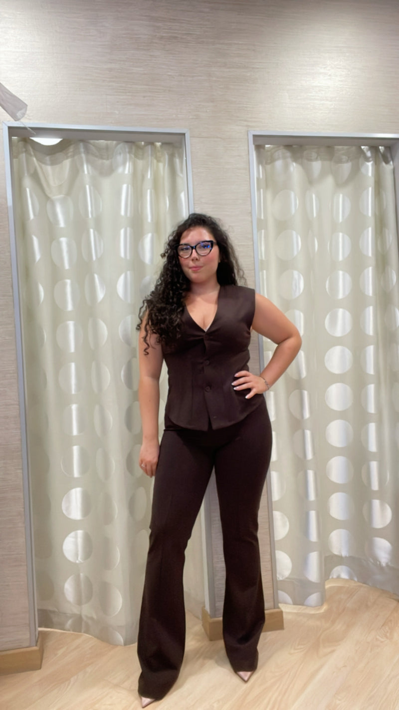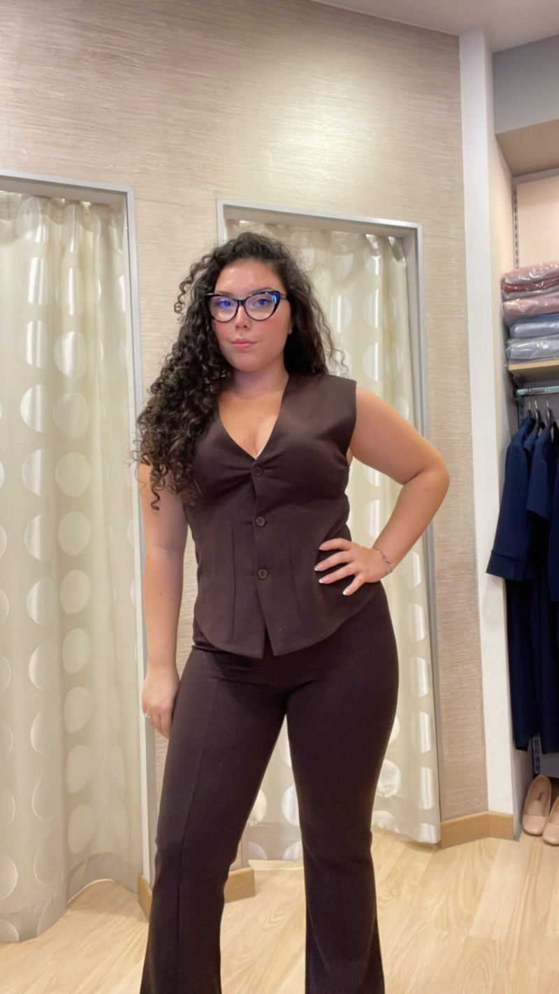 Scopri il gilet marrone con micro brillantini, un capo elastico dal fit modellante che valorizza la tua silhouette con eleganza unica. Questo must-have arricchisce ogni outfit con un tocco raffinato e luminoso, perfetto per chi desidera distinguersi con stile. Aggiungilo al tuo guardaroba per un look wow in ogni occasione.