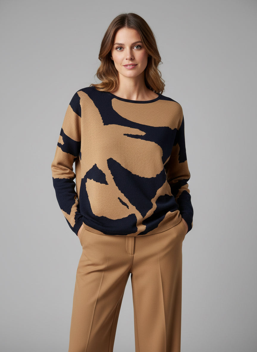 Questa maglia intarsio è un must-have per ogni appassionata di moda! I suoi bellissimi colori beige e blu non solo aggiungono fascino al tuo look, ma anche coccolano con il loro comfort. Indossala per sentirti elegante e a tuo agio allo stesso tempo!
