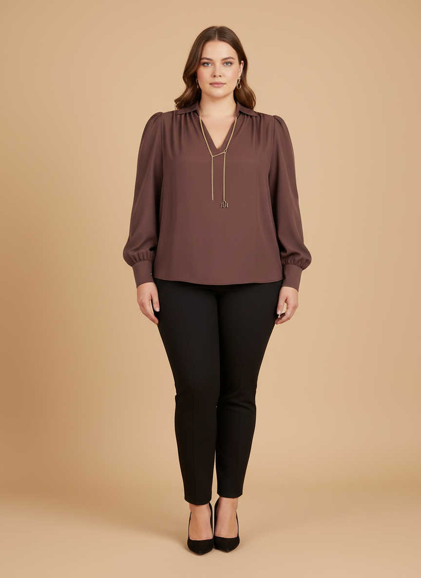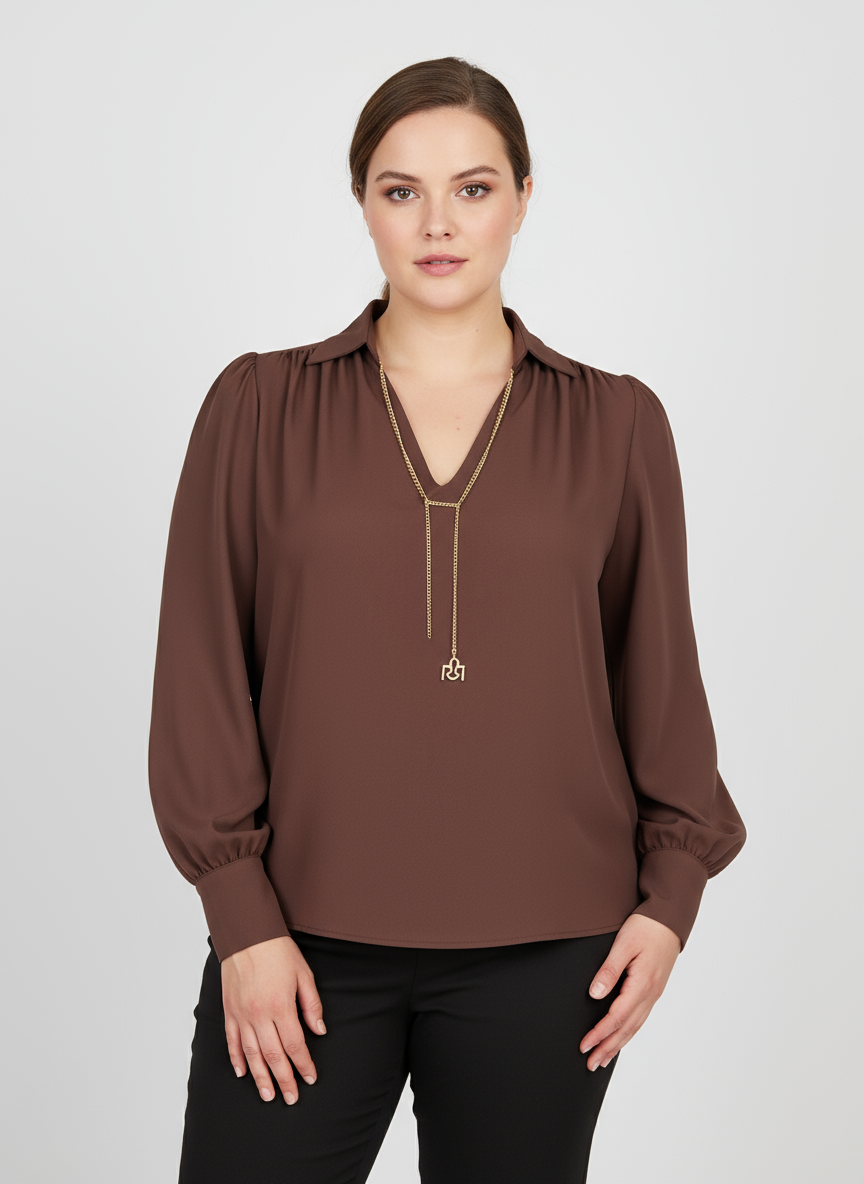 Scopri la blusa cioccolato, un capo essenziale per arricchire il tuo guardaroba con un colore di tendenza irresistibile. Perfetta per creare outfit eleganti e sofisticati, questa blusa valorizza ogni look con la sua tonalità calda e avvolgente. Non lasciarti sfuggire l’occasione di indossare un pezzo versatile e chic, ideale per ogni occasione.