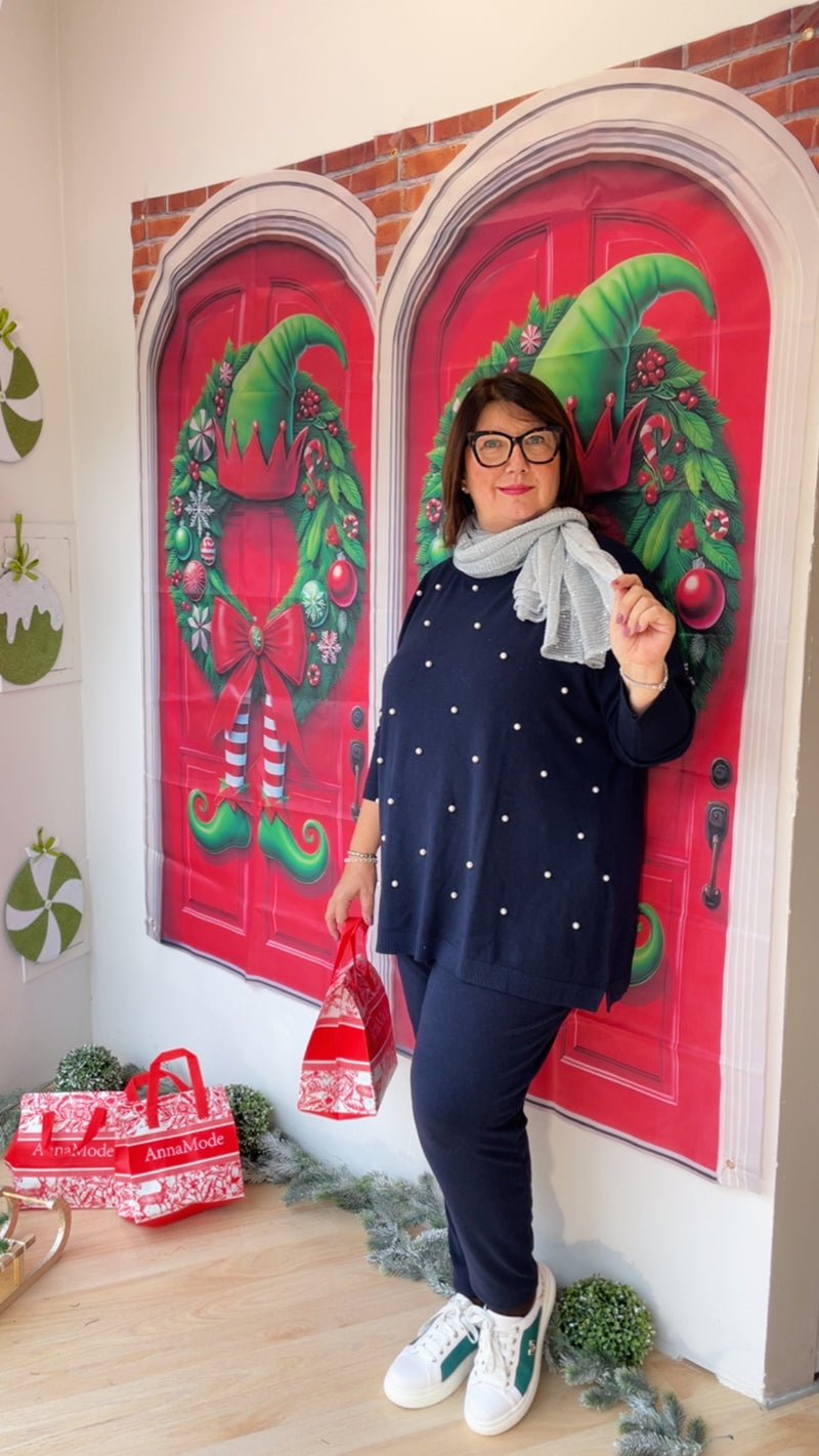 Completo Budapest: il dono natalizio che incanta. Morbidissima maglia che avvolge con eleganza e comfort, perfetta per le festività. Ogni acquisto include una sciarpa natalizia esclusiva e una borsa AnnaMode natalizia, trasformando il tuo regalo in un'esperienza completa di lusso. Sorprendi chi ami con uno stile sofisticato e dettagli curati che catturano l'essenza del Natale. Un completo che celebra bellezza, calore e generosità in ogni fibra.