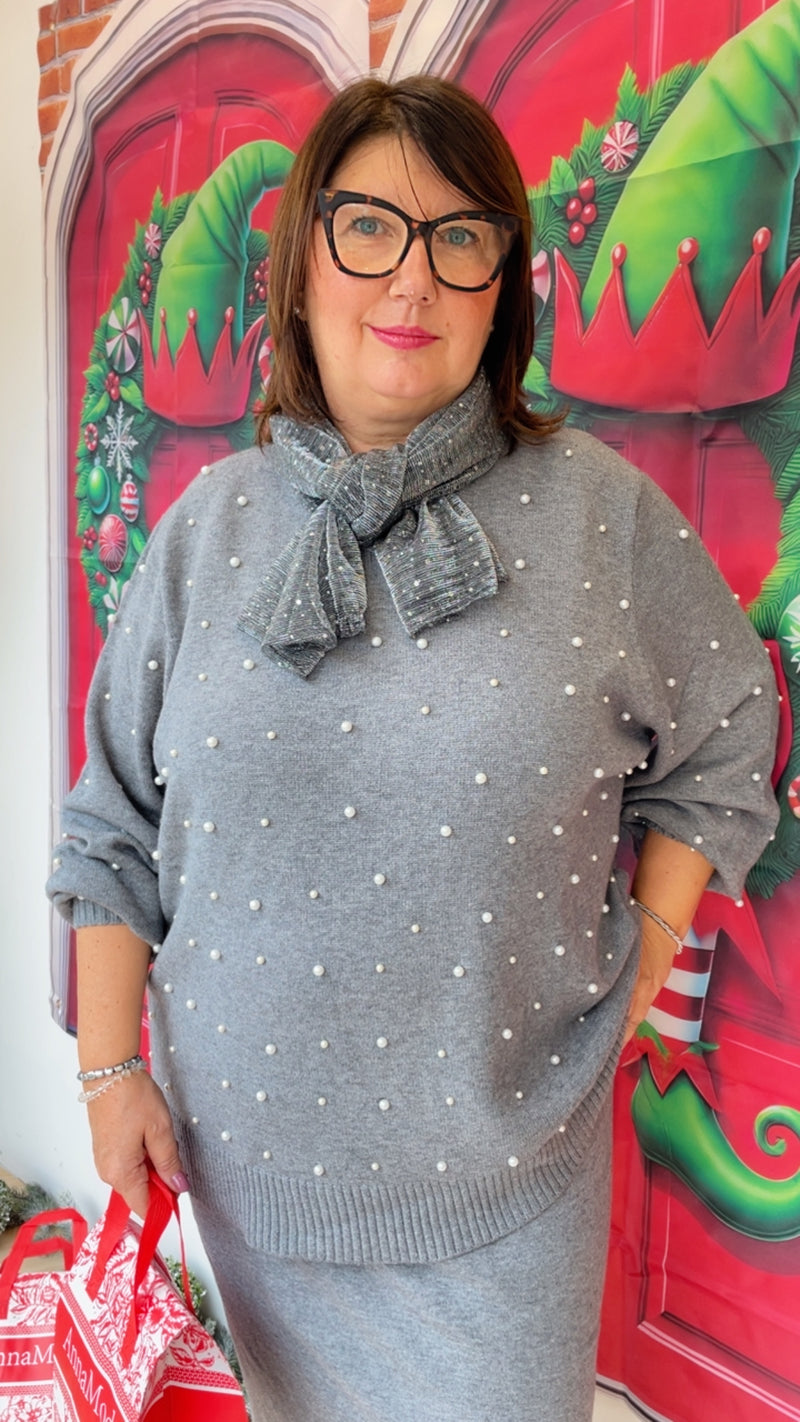 Completo Praga: il dono natalizio che incanta. Morbidissima maglia che avvolge con eleganza e comfort, perfetta per le festività. Ogni acquisto include una sciarpa natalizia esclusiva e una borsa AnnaMode natalizia, trasformando il tuo regalo in un'esperienza completa di lusso. Sorprendi chi ami con uno stile sofisticato e dettagli curati che catturano l'essenza del Natale. Un completo che celebra bellezza, calore e generosità in ogni fibra.