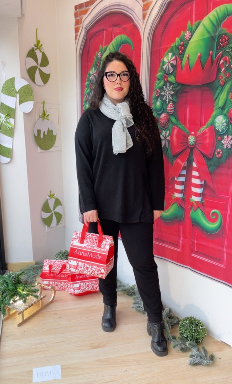 Completo Vienna: il dono natalizio che incanta. Morbidissima maglia che avvolge con eleganza e comfort, perfetta per le festività. Ogni acquisto include una sciarpa natalizia esclusiva e una borsa AnnaMode natalizia, trasformando il tuo regalo in un'esperienza completa di lusso. Sorprendi chi ami con uno stile sofisticato e dettagli curati che catturano l'essenza del Natale. Un completo che celebra bellezza, calore e generosità in ogni fibra.