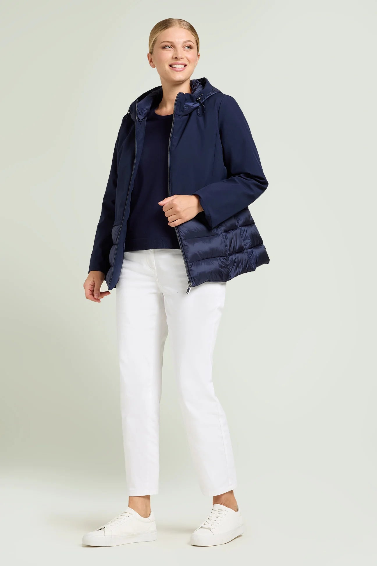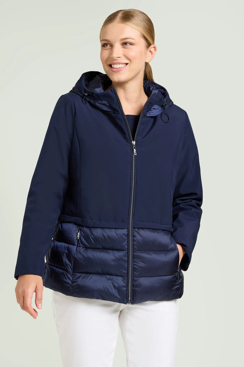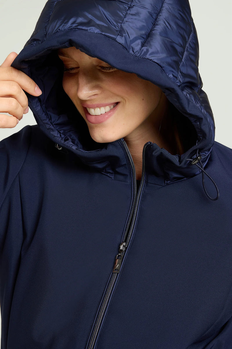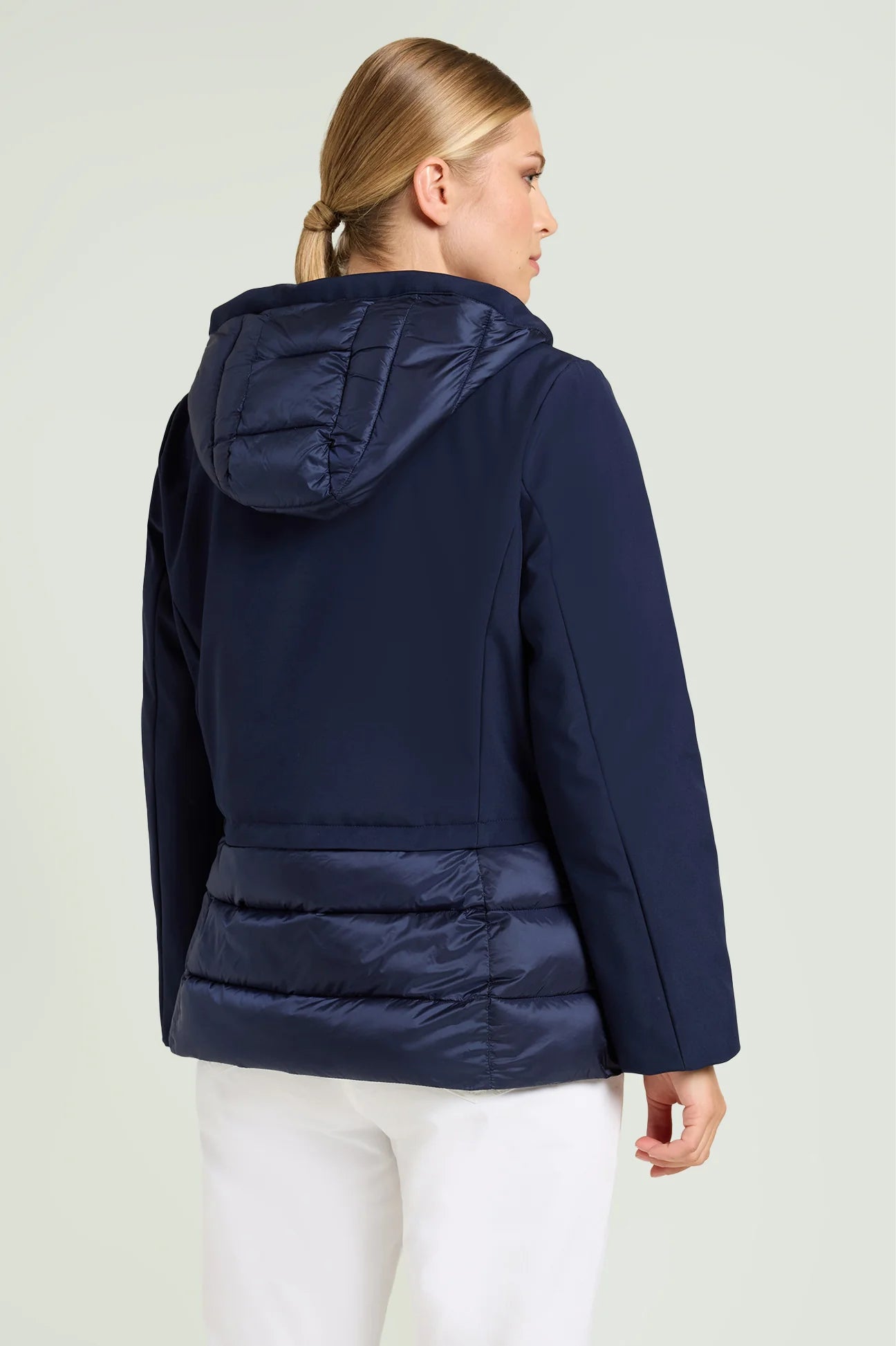 "Esplora stili diversi con il Caban Luisa Viola. Realizzato in scuba e nylon imbottito con cappuccio, offre una linea ad A e chiusura con zip per massima comodità. Le tasche inclinate aggiungono praticità. Grazie alla combinazione dei materiali, questo capo può essere indossato come caban inizio stagione o come piumino più avanti."