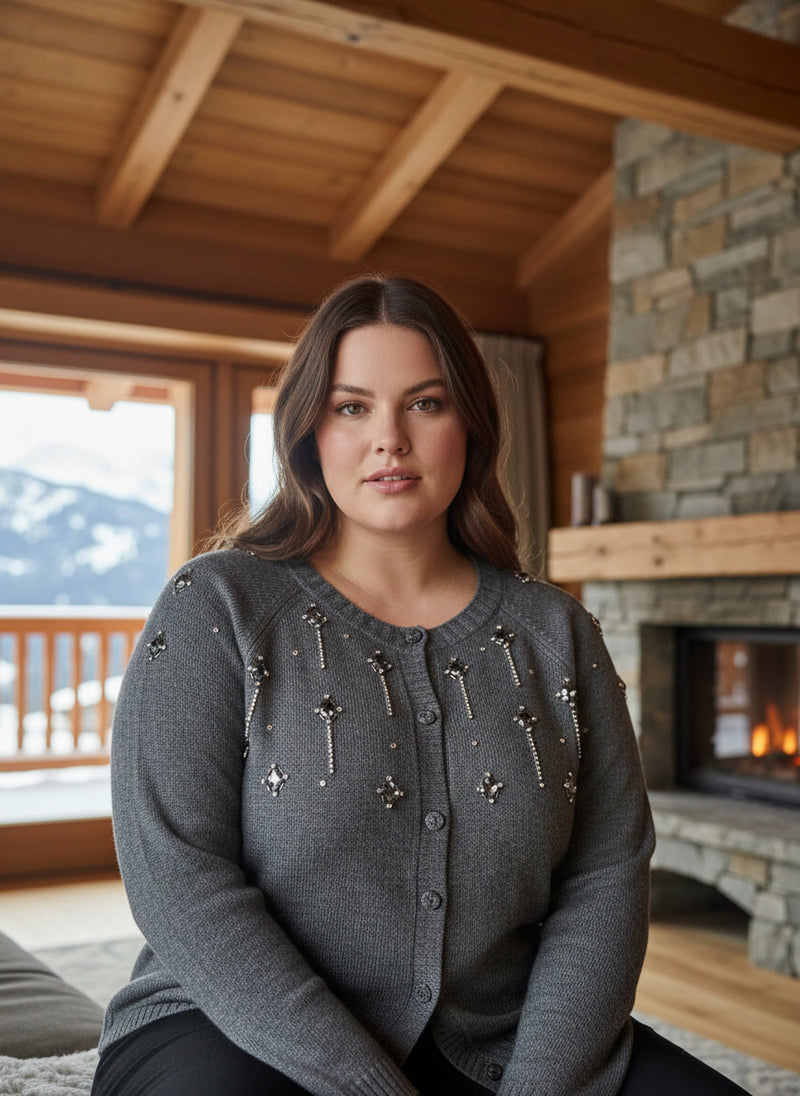 Questo bellissimo maglia cardigan è perfetto per chi vuole sfoggiare un look elegante e sofisticato. I diamanti applicati sono una vera chicca, che non passa inosservata. Aggiungi un tocco di classe e stile al tuo guardaroba con questo cardigan dall'aspetto lussuoso. Non passare inosservato, scegli Maglia Cardigan Diamanti!