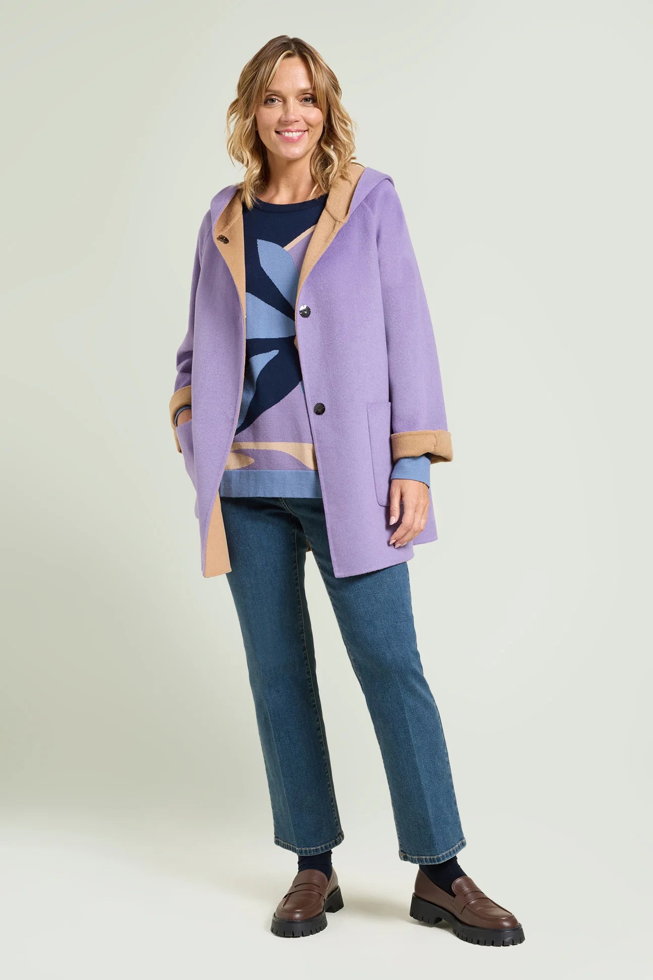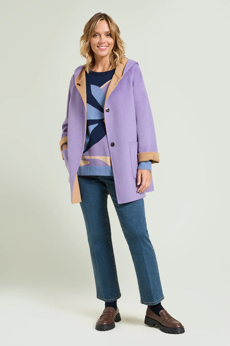 Questa maglia intarsio in taglie comode è perfetta per le amanti della comodità e dello stile. Realizzata con una morbida viscosa, presenta un punto rasato di alta qualità e una scollatura a barchetta. I suoi elementi floreali in tonalità blu, malva, azzurro e cammello sono perfettamente bilanciati per un look armonioso.