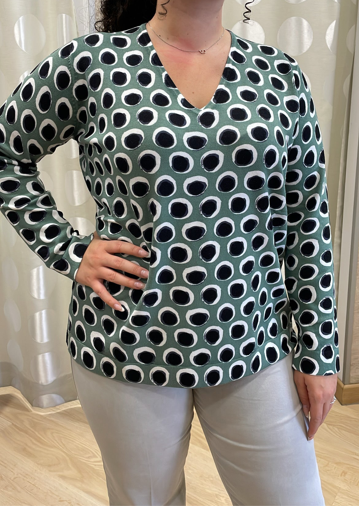 Questa maglia luisa Viola fantasia è realizzata in morbida viscosa su base verde, con uno scollo a V che slancia la figura. Comoda e versatile, è disponibile in una vasta gamma di taglie, dalla 46 alla 60. Sia che la si indossi per un look casual o elegante, sarà sempre una scelta di stile sicura e raffinata.