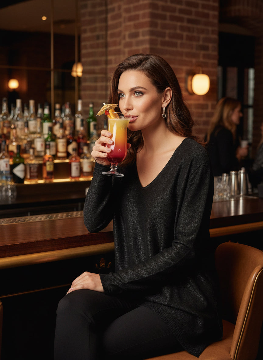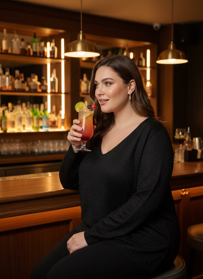 Lasciatevi ammaliare dal fascino senza tempo della Sophia maglia placcata argento. Il suo scollo a V e la placcatura argento vi faranno sentire delle vere dive, perfette per una cena elegante o un cocktail. Aggiungi un tocco di luce al tuo look.