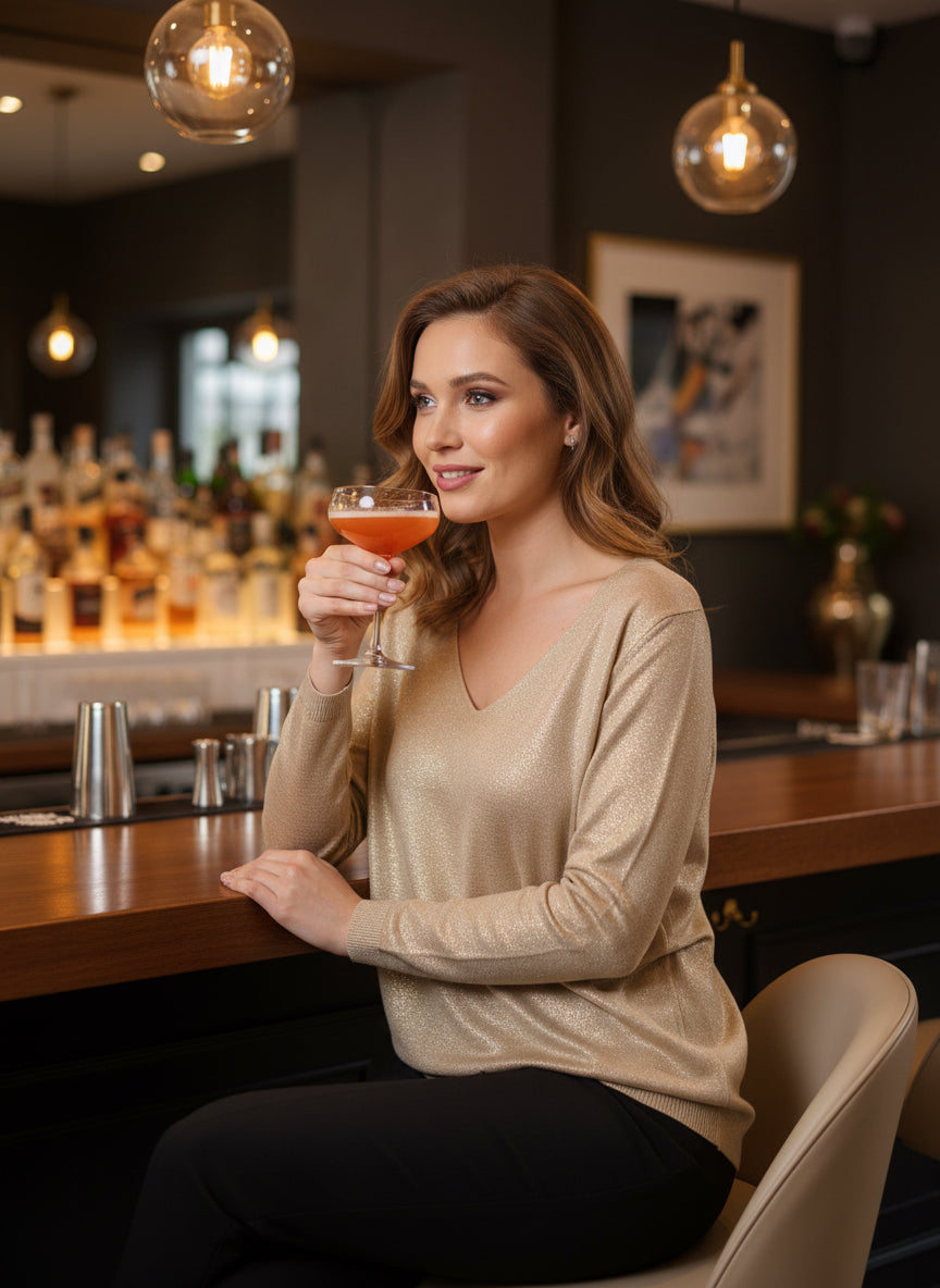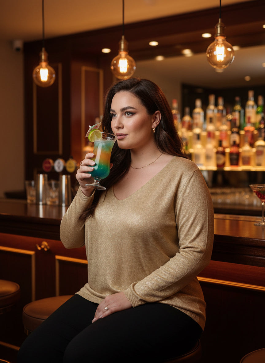 Lasciatevi ammaliare dal fascino senza tempo della Sophia maglia placcata argento. Il suo scollo a V e la placcatura argento vi faranno sentire delle vere dive, perfette per una cena elegante o un cocktail. Aggiungi un tocco di luce al tuo look.