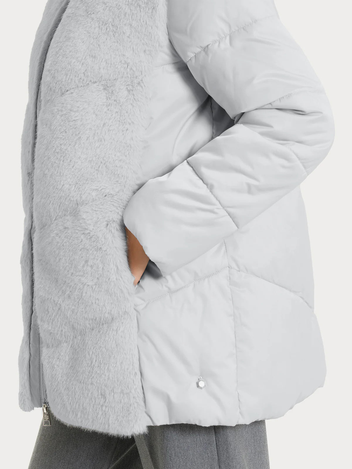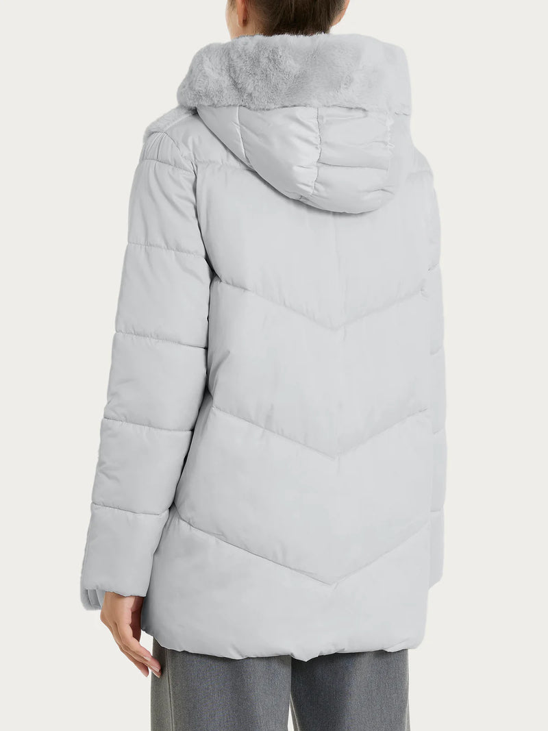 Proteggi te stessa dal freddo con il nostro Piumino Vegan Down. Il cappuccio e la chiusura frontale con zip ti terranno al caldo, mentre le tasche laterali pratiche ti permettono di tenere con te gli oggetti essenziali. Realizzato con materiali di alta qualità, incluso vegan fur, per un calore senza crudeltà verso gli animali.